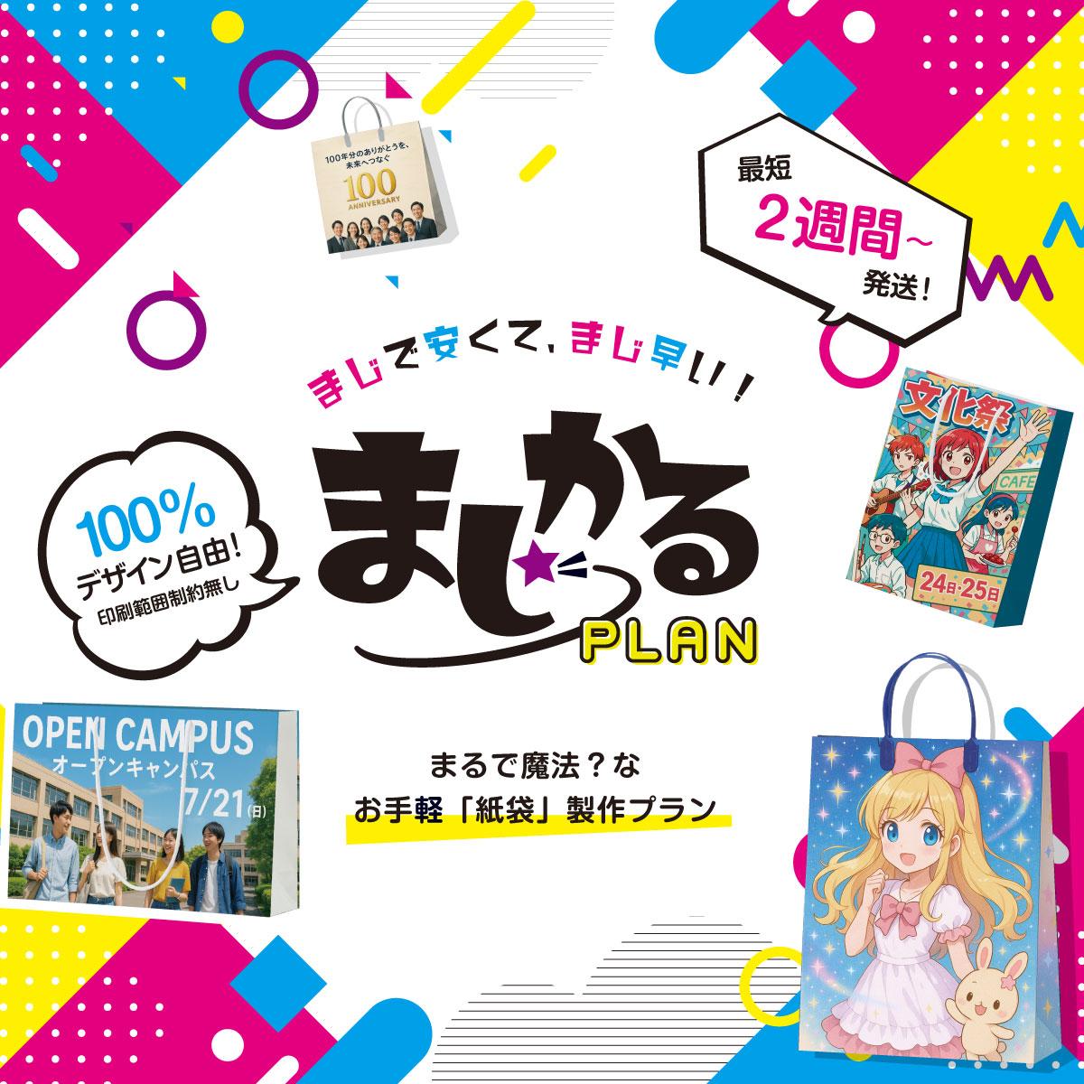 短納期、小ロットで出来るオリジナル紙袋の”まじかるプラン”サービスがスタートしました。 |